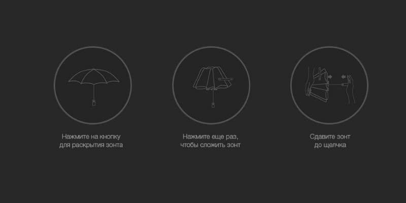 Одним легким нажатием зонт можно быстро раскрыть или сложить. Это удобно в любой ситуации, особенно когда заняты обе руки, или дождь начался неожиданно.