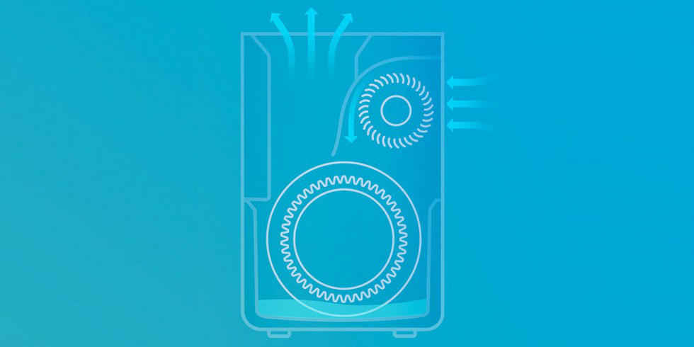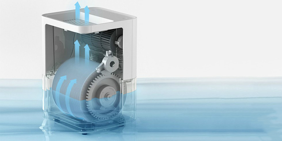 Для постоянной циркуляции воды используются 36 лопастей, поэтому в систему существует постоянный контакт с водой. Благодаря 240 миллилитрам испаряемой воды в час достигается высокий уровень увлажнения комнаты, в 2 квадратных метрах около увлажнителя возможно появление тонкого слоя водяного пара.