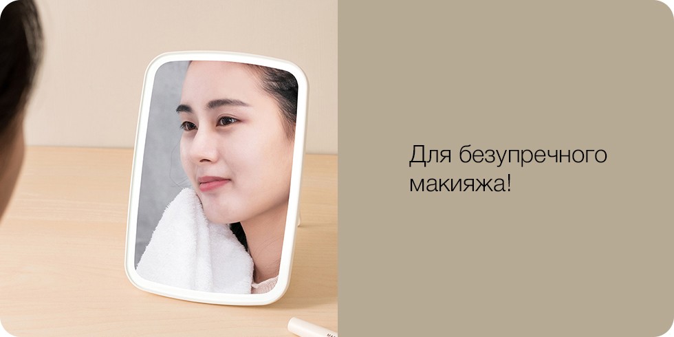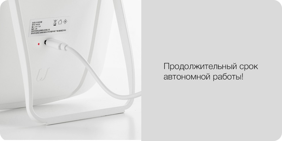 Зеркало работает без проводов от литиевого аккумулятора емкостью 1200 мАч, обеспечивающего продолжительный срок автономной работы. С таким зеркалом Вы сможете устроить персональную гримерку в любом помещении.
