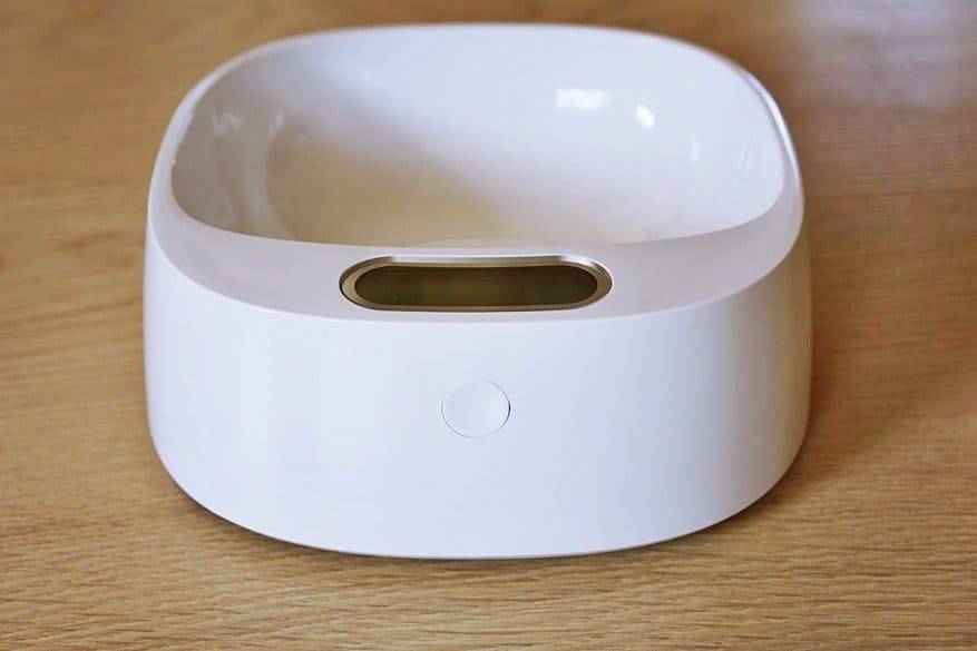 Во внешнем виде миске нет ничего лишнего. Сверху расположен LCD-дисплей, отображающий вес корма, а единственная кнопка для управления размещена сзади аппарата. Лаконичный дизайн миски позволяет воспринимать ее как дополнительный аксессуар в интерьере вашей кухни.